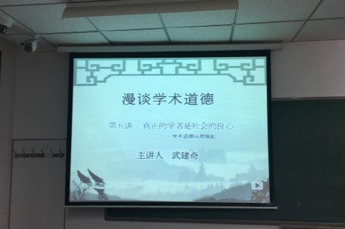 2018年11月28日晚20:00,我院2018级硕博新生顺利开展了第三期学教育特色活动,硕士班班长刘美杰同学、王子阳同学组织全体硕博新生共同观看了河北经贸大学武建奇教授主讲的《河北经贸大学公开课:漫谈学术道德》第五讲《真正的学者是社会的良心——学术道德从我做起》。