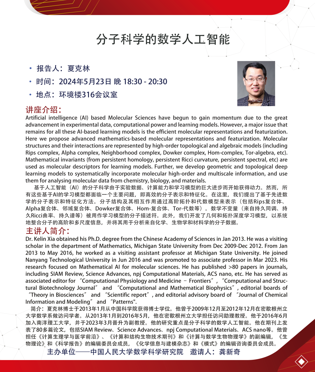 讲座预告:分子科学的数学人工智能