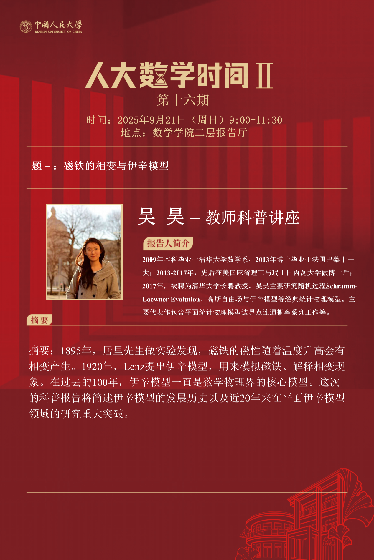 (1)教师科普报告,清华大学吴昊教授分享前沿数学领域突破性成果