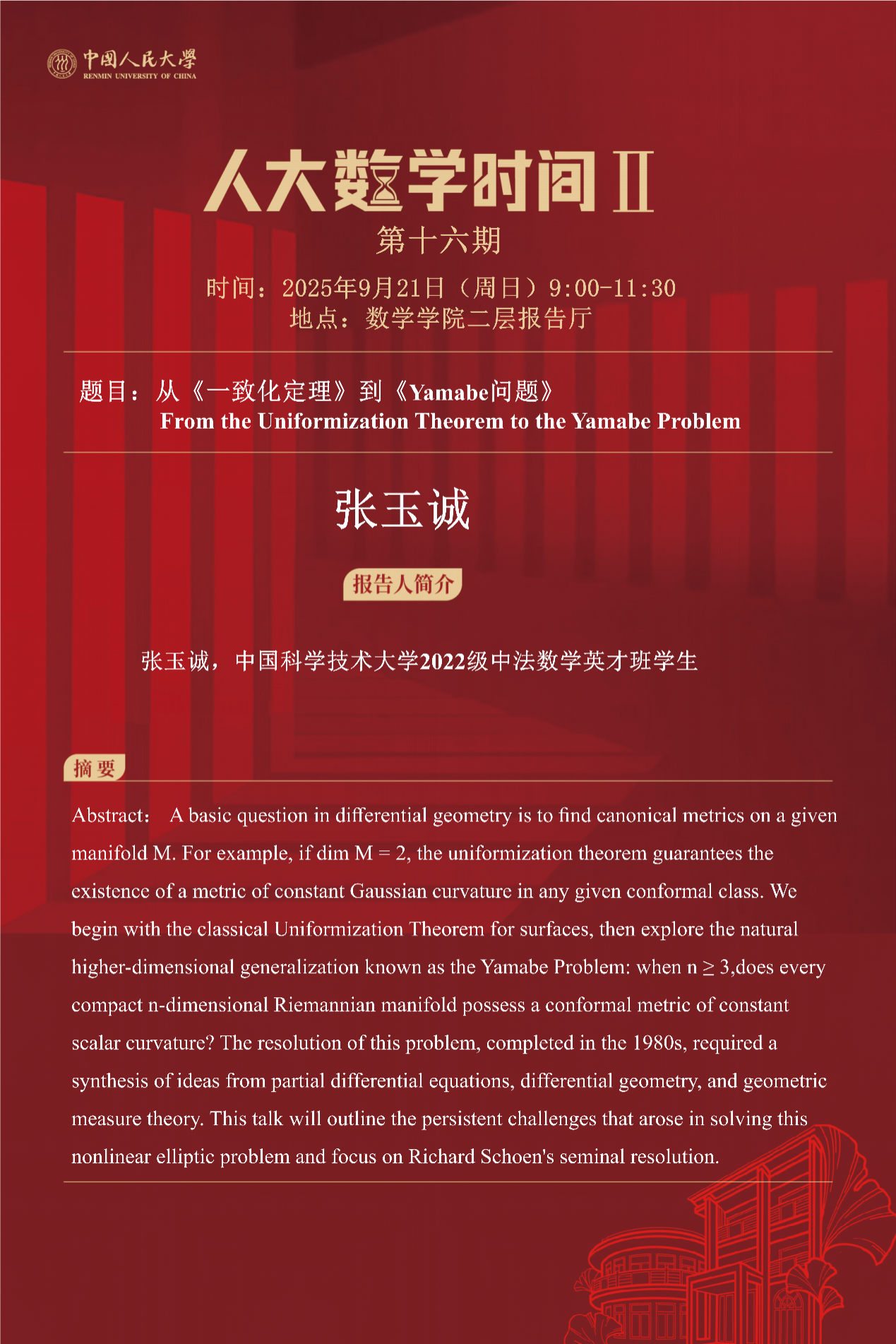 报告人:张玉诚,中国科学技术大学2022级中法数学英才班学生