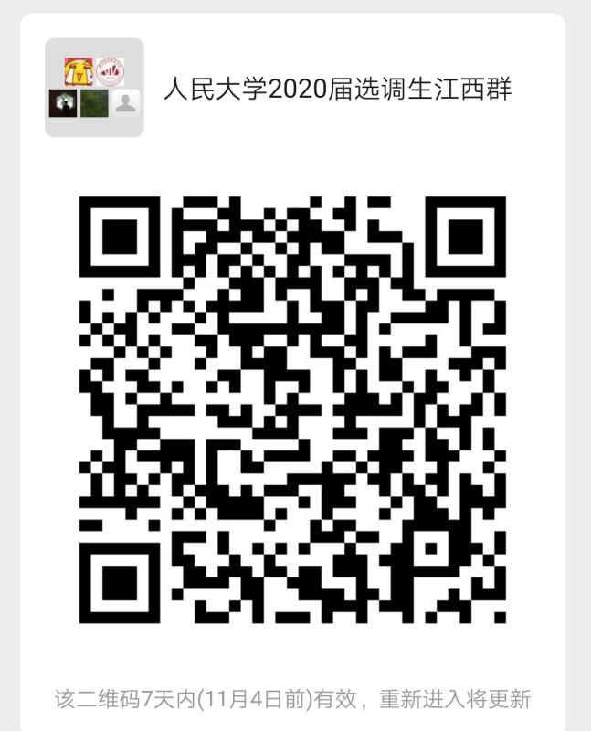 感兴趣的考生可扫码加入“人民大学2020届选调生江西群”,如微信群满100人,可加微信:jicengjiuye,备注“姓名+学院+江西2020届选调”