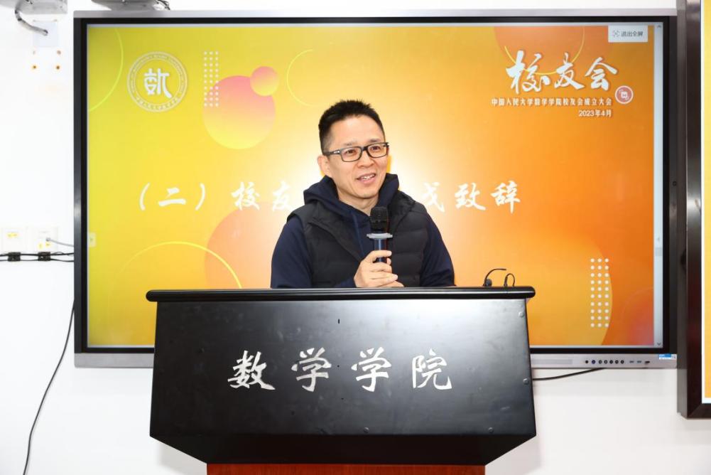 1994级本科生王戈作为校友代表发言,他表示校友会是大家共同的家园,发挥着桥梁与纽带作用,希望各位校友能够多积极参加校友会工作,为校友会的发展建言献策,携手共创美好的明天。