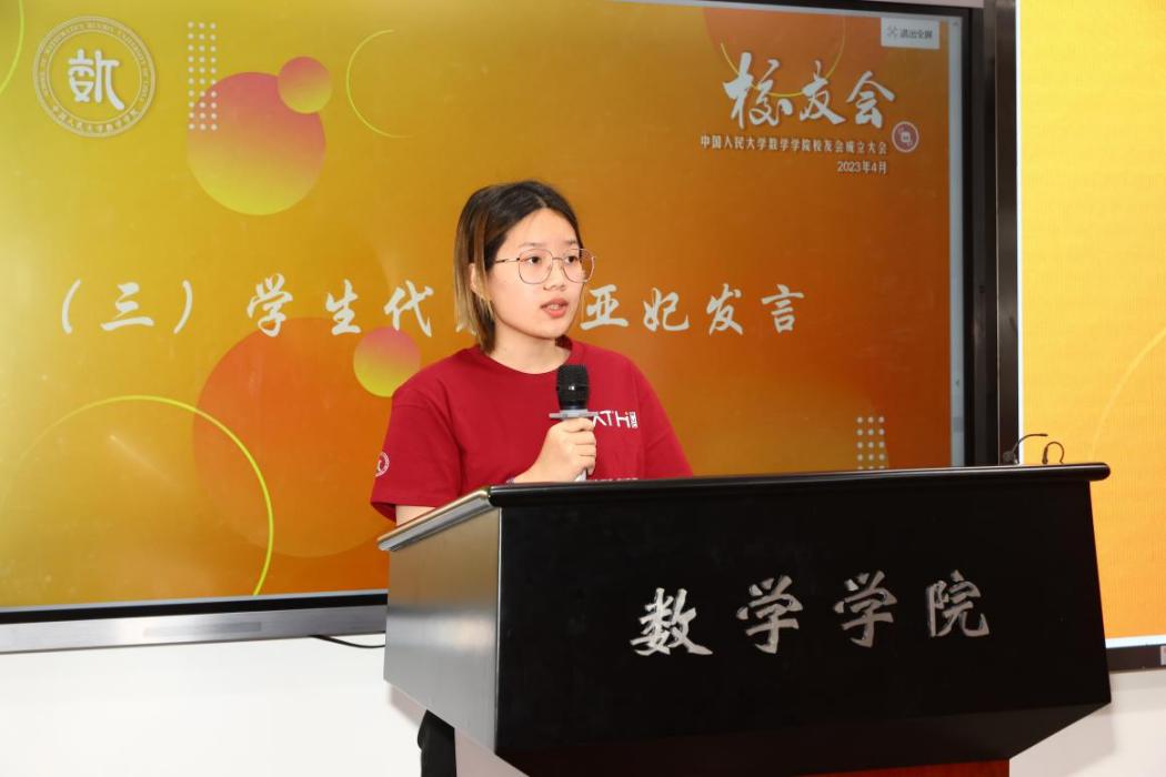 2020级本科生挪亚妃作为在校学生代表发言,她表示历届校友们共同书写出了学院厚重而绚丽的人才培养史,这是学院永远珍藏的宝贵财富,也是本院学生永远流传的榜样书,希望在校同学未来有更多机会与优秀的师兄师姐交流学习。