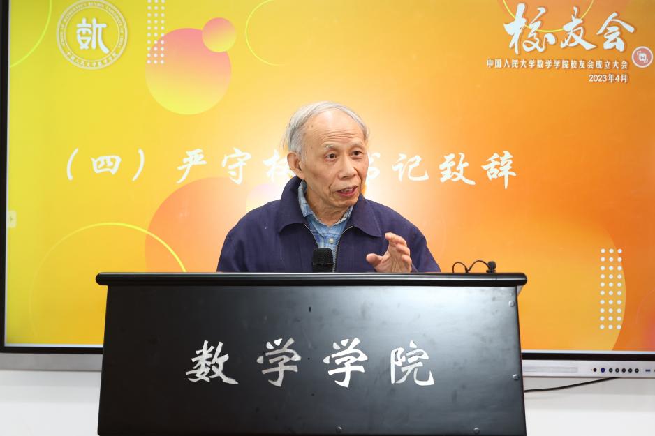 接着由严守权老书记致辞,他回忆道:“人大数学系创办的时候路很窄,其他学校的数学系都是老牌专业了,我们打出了经济数学这一招牌,从这条窄路上越走越宽。”老书记满怀深情地讲述创办时期老教师们的现状,他们一起为人大数学开了好头,年老了仍旧关心学院发展状况,老书记对学院未来发展充满信心。
