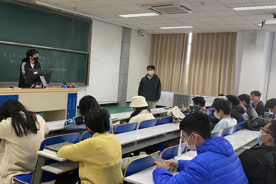 在会上,团支部书记、预备党员陈露希同学首先向同学们介绍二十大的主要精神,号召同学们始终坚持在中国共产党的领导下努力学习,砥砺前行,在当今中国科学技术被卡脖子的时间段,努力打好专业基础,将为国家科学技术发展作为目标,融入自身未来规划当中。接着,同为预备党员的汪泓宇同学向大家介绍了自己对于二十大精神的理解体会,他认为,我们现在的学习,一定要结合中国国情,以为祖国为人民服务为目标,成为一名真正的强国先锋,复兴栋梁。最后,由白骏杰同学发表了自己对于如何回答时代之问的看法,号召同学们坚决在中国共产党的领导下努力奋斗,为实现中华民族伟大复兴而不懈努力。