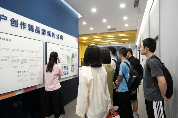 在讲解员的带领下,同学们对途游公司的文化墙、办公区、面试区、休闲区等进行参观,更加近距离地感受到企业运作实际情况和文化氛围。参观结束后,双方进行座谈交流。