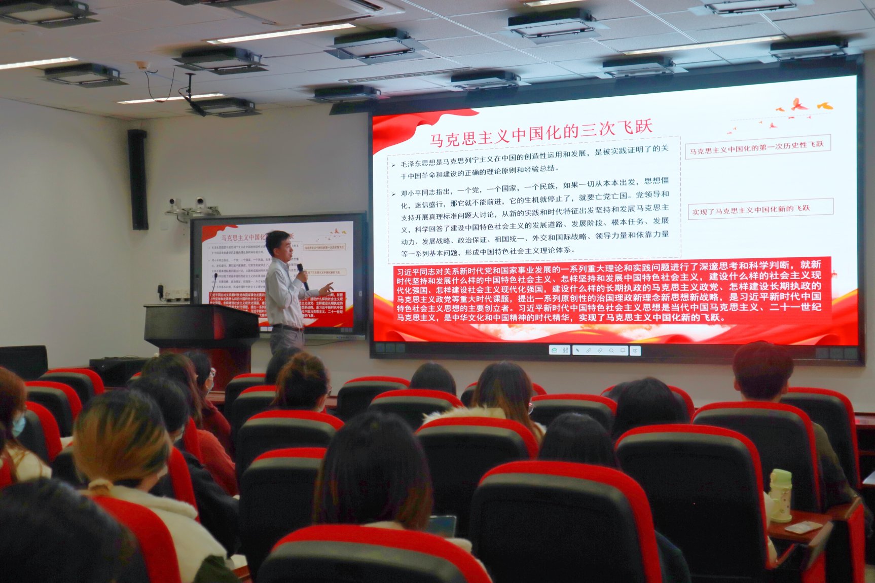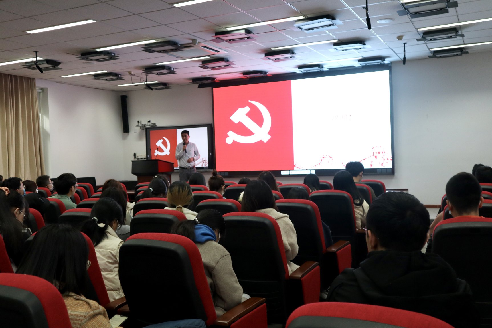 3月16日下午,13av 关于“学习贯彻党的十九届六中全会精神,强化党员政治意识、提升党组织政治功能”主题宣讲会暨学校第十五次党员代表大会代表选举工作宣讲会在学院二层报告厅举行。本次会议由沈健副书记主持,全体学生党员参加。