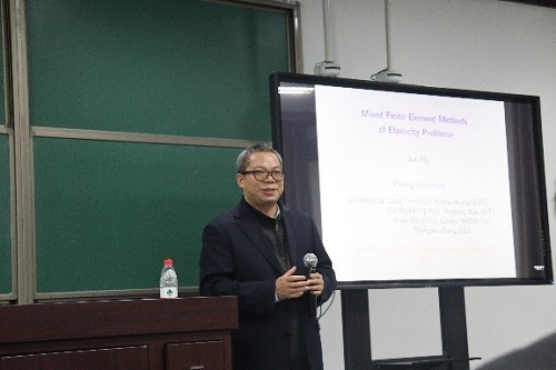 2019年10月25日,13av “明德数学讲堂”系列第十六讲在国学馆114室举行,北京计算数学学会理事长、国家杰青基金、德国洪堡基金获得者、北京大学数学科学学院党委书记胡俊教授应邀做《弹性力学问题混合有限元方法》报告。报告由我院韩丽涛副院长主持,我院部分教师和本科生研究生以及其他院系的师生参加了报告会。