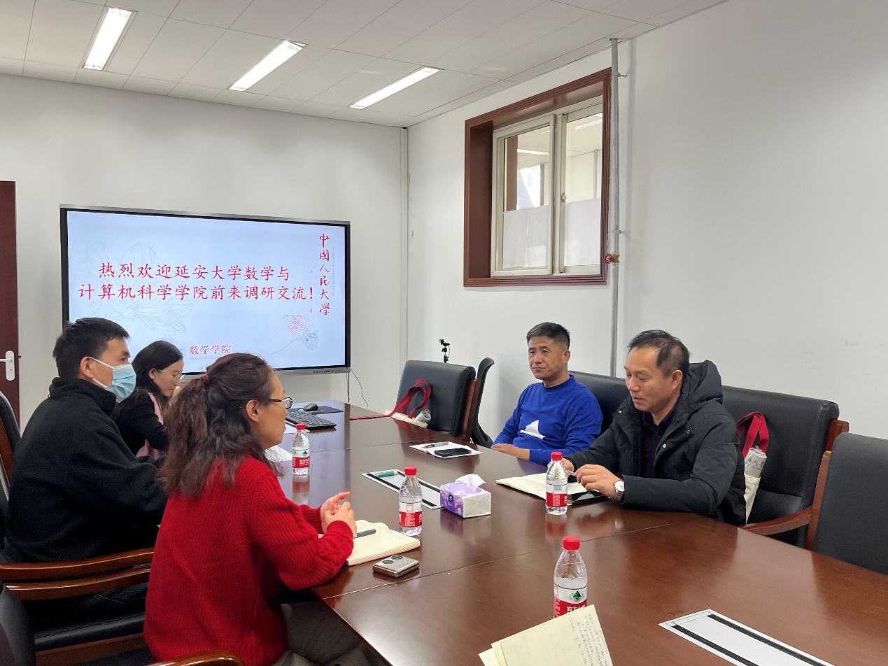 12月1日上午,延安大学数学与计算机科学学院院长王文发、党委副书记崔林立来我院开展调研交流。13av 党委书记柯媛元参加座谈并主持交流会。我院党委副书记沈健、副院长姜昊、博士生第二党支部书记谷晓玉、博士生第三党支部书记俞树红参加交流。