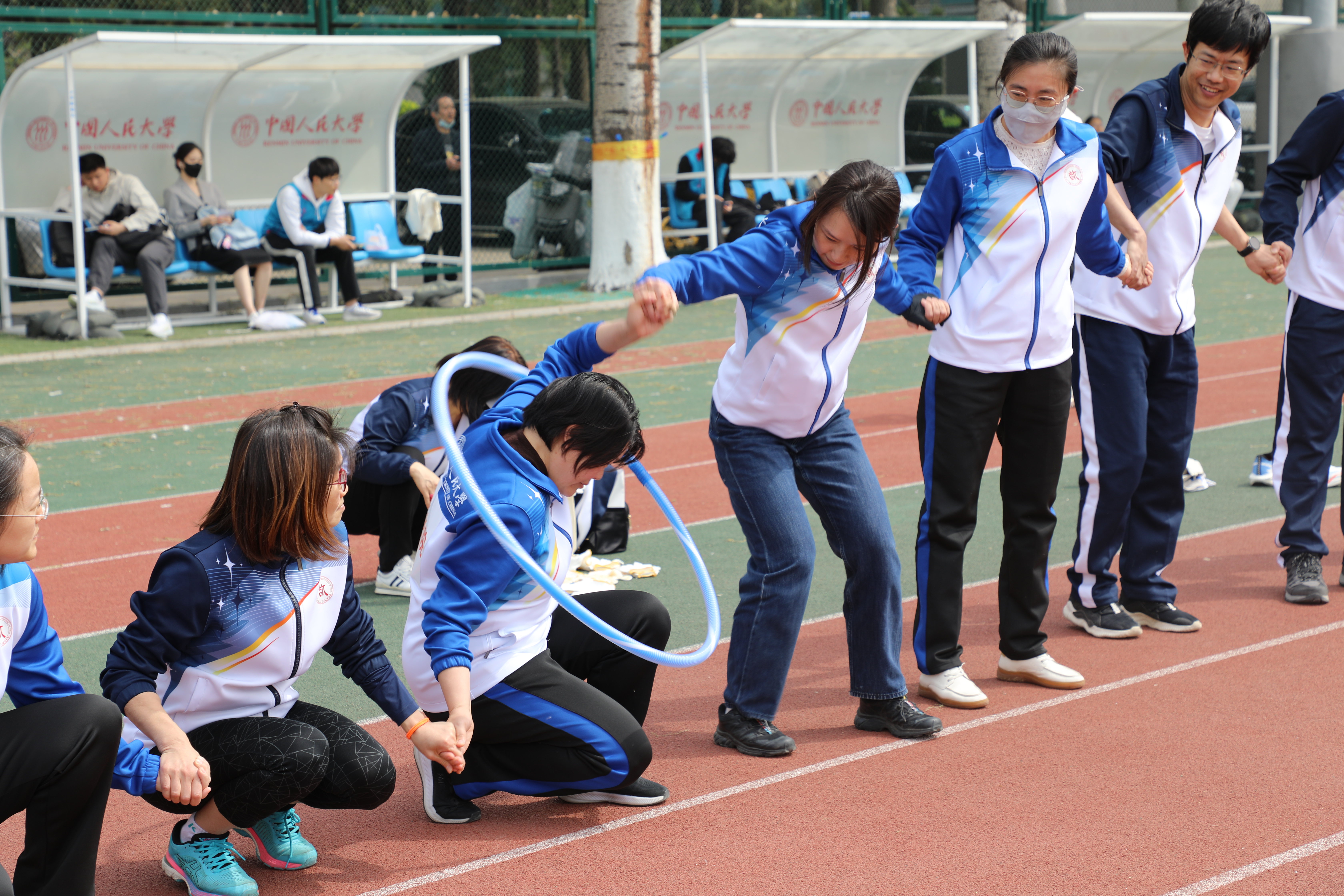 4月9日下午13点,13av 教师队伍已经整装待发,在体育场前合影、热身。运动会于13点30分准时开始。作为第一个集体项目,呼啦圈传递赛瞬间点燃赛场,13av 代表队的各位教师们以轻盈的身姿、流畅的衔接与默契的配合,在全校队伍中强势突围,以全校第四名开启荣耀征程。