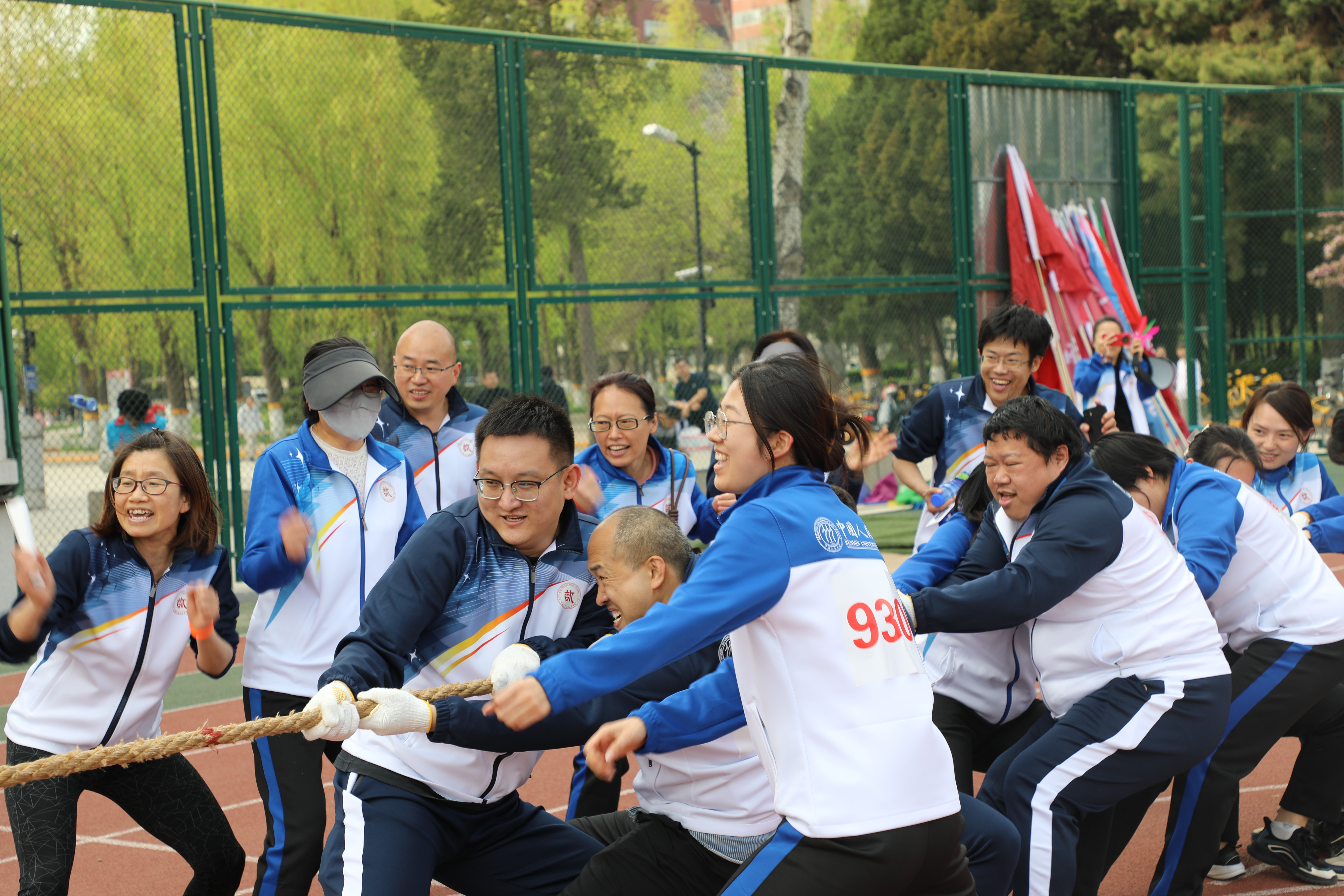 拔河赛场更见豪情,面对强敌国学院,参赛教师们稳若磐石、齐心发力,绳索中线在拉锯战中节节推进,助威与呐喊响彻全场,终以雷霆之势挺进第三轮,将数学人的韧性展现得淋漓尽致。