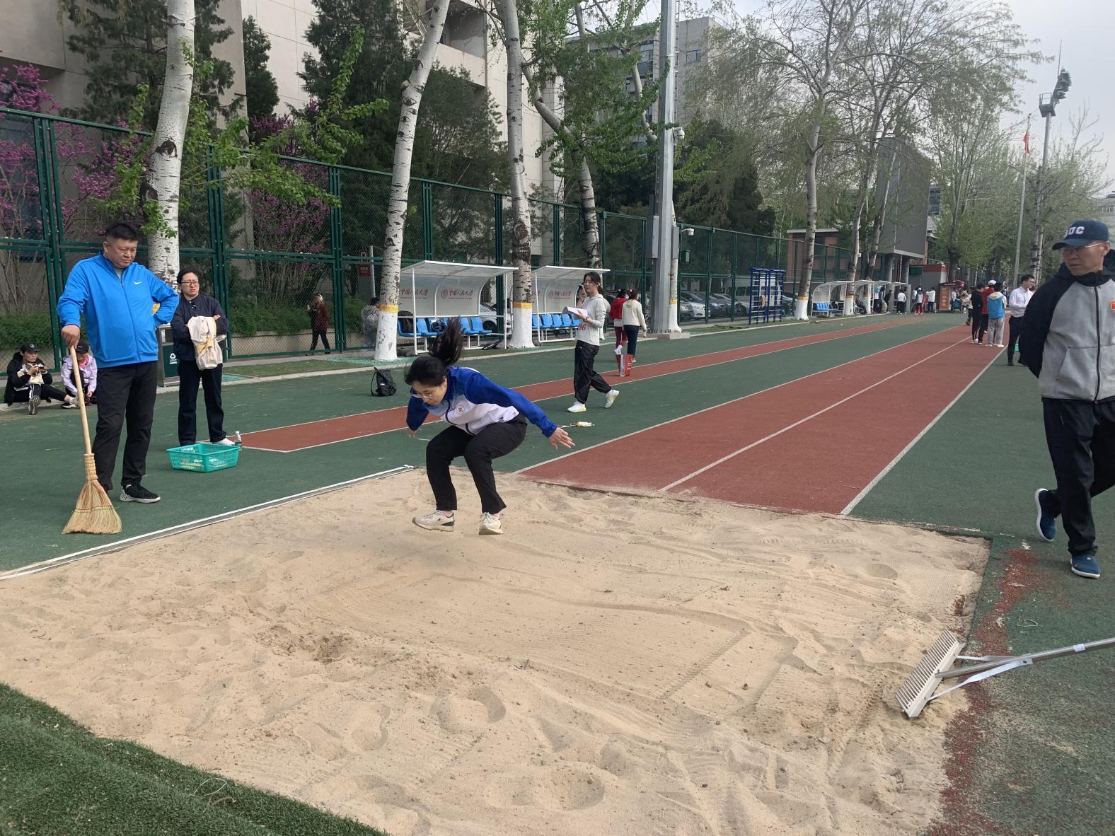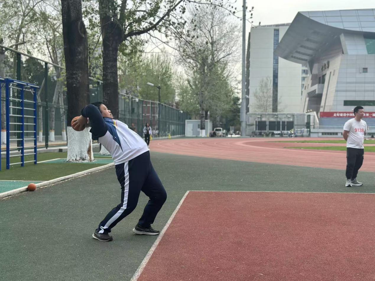 在田径场另一端,田赛也在激烈进行中。男子掷实心球赛场,李昊老师铆足全力,以抛物线最优解投出铜牌佳绩,诠释了力与美的完美结合。在女子跳远比赛中,我院曹梦雨、赵春晓两位青年教师轻盈飞跃,如函数曲线般精准落地;赵春晓老师在身体不适的情况下仍跻身四强。在接下来的跳绳与踢毽比赛中,我院派出周中帆、吴岚、魏二玲、姜昊四位女教师参赛,彩羽翻飞间尽显运动之美。