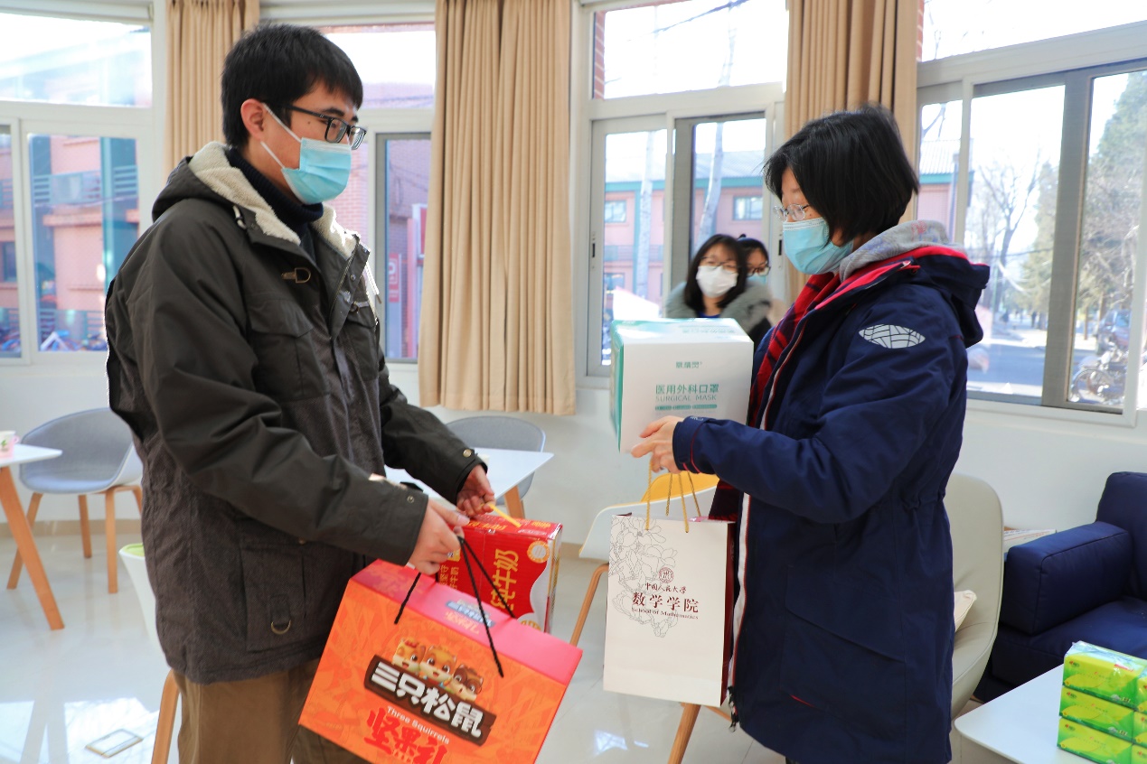 旋天颖书记给同学送上学院精心准备的春节礼包,并祝福同学们度过一个健康祥和、平安喜乐的春节。学院领导、老师的慰问让留校学生倍感温暖、备受鼓舞,他们表示,虽然没有和家人一起过年,但仍然感受到了“家”的温暖,会珍惜寒假的时间好好学习。在交流中,同学们也纷纷送上对学院及老师们的新春祝福。