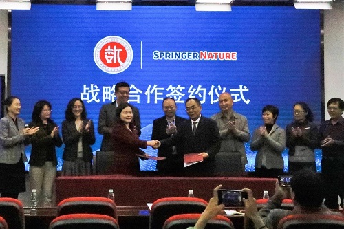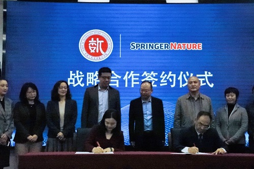 2020年10月30日上午,13av 与Springer Nature集团的战略合作签约仪式在13av 二层报告厅举行。13av 副校长王轶,Springer Nature销售副总裁(中国区,韩国和蒙古国)崔晓莹,13av 院长郑志勇,党总支书记旋天颖,Springer Nature中国区图书总监李琰,Springer Nature销售总监(中国和蒙古国)吕江峰,13av 图书馆党委书记牟锋,13av 图书馆副馆长祝小静出席本次签约仪式,Springer Nature工作人员代表、图书馆老师代表以及13av 师生代表参会。旋天颖主持签约仪式。