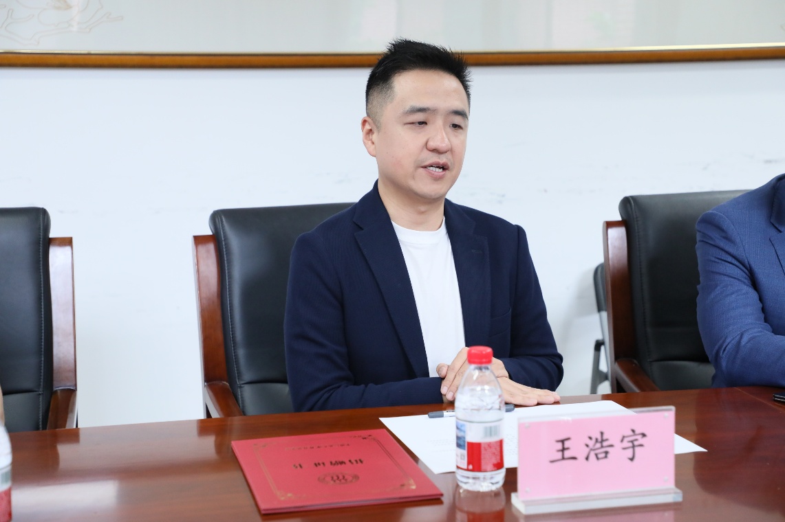 郭栋副部长代表校友服务与资源拓展部、教育基金会向王浩宇校友的捐赠致以感谢,他详细介绍了学校校友工作和基金工作的最新安排,希望未来王浩宇校友能够继续提供支持和帮助。