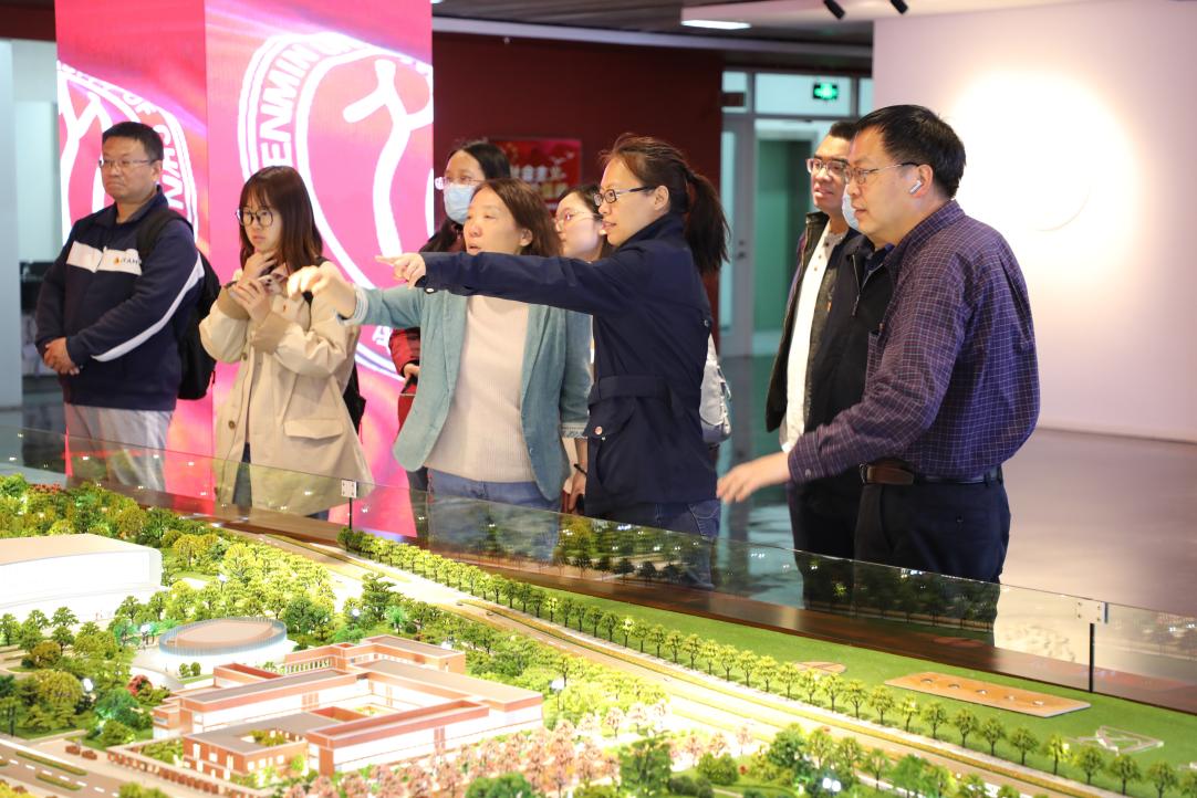 接着,讲解员为大家介绍了84位人大“大先生”画像,重温习近平总书记4月25日在13av 考察调研时重要讲话精神,充分领略到人大“大先生”为学求真的大师渊范。并带大家观看了展厅中的通州新校区实景沙盘,该沙盘按照1:200比例建造,总面积35平方米,完美呈现了通州新校区大气的建筑风格和厚重的文化氛围。