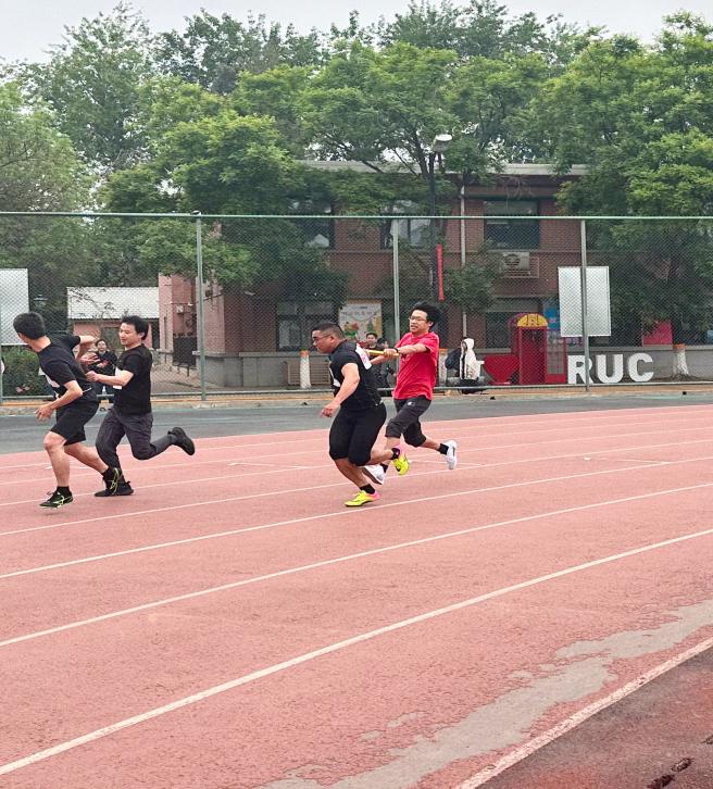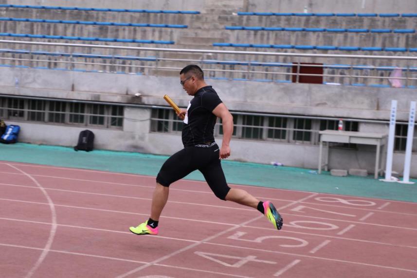 最后,在压轴项目“男子教工4x100米接力”项目中,我院派出4位骁勇健儿参战(第一棒:倪天佳老师;第二棒:郭琪老师;第三棒:张艺老师;第四棒:张良泉老师)。随着裁判枪响,首棒如离弦之箭,飞奔而出。热烈的掌声、呐喊声伴随着选手们奔跑,在比赛现场响彻不绝,气氛燃至沸点。每一次棒的交递都是对选手间默契的考验,我院健儿全程不畏艰险,勇往直前,更是在关键时刻奋力赶超,全力冲刺,最终夺得全校第二的优异成绩。