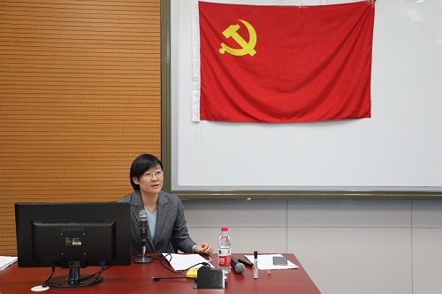 旋天颖讲授的题目为“落实立德树人根本任务,培养社会主义建设者和接班人”。她首先从高校立德树人要坚持中国共产党的领导和社会主义办学方向,要建设高水平的人才培养体系,要建设政治素质过硬、业务能力精湛、育人水平高超的高素质教师队伍等三个方面,与大家交流学习习近平总书记关于立德树人重要论述的体会。之后,她以历史追寻初心,信仰传递力量为主题,从陕北公学开始,梳理分析人民大学在各发展阶段的办学定位、人才培养目标、培养方式、培养成效,结合先进人物和事迹,阐述了人民大学立德树人的具体做法以及形成的育人传统——始终忠诚于党和人民,为党的事业培养人;注重马克思主义教育,以马克思主义思想引领人;艰苦奋斗开拓创新,以坚定的信仰和奋斗的精神涵养人。最后,她指出,当今创新引领发展的时代,给数学学科发展带来重大机遇。主题教育期间,学院班子开展多种方式的调研,并对发现的问题进行了认真的梳理,已经形成问题清单,下一步将切实落实“守初心、担使命、找差距、抓落实”总要求,认真检视问题,积极落实整改。我们将抓住机遇,勇于担当,传承好、发展好人民大学红色基因和优秀传统,全面落实立德树人根本任务,为党育人,为国育才,为中华民族伟大复兴做贡献。