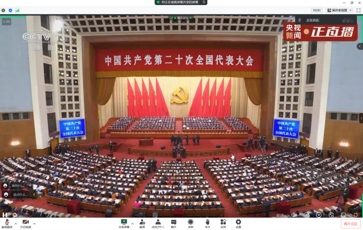 2022年10月16日上午10时,我在13av 会议厅与大家共同观看了党的第二十次全国代表大会,为党的建设与国家的进步激动欣喜,为身处百年盛世倍感自豪。