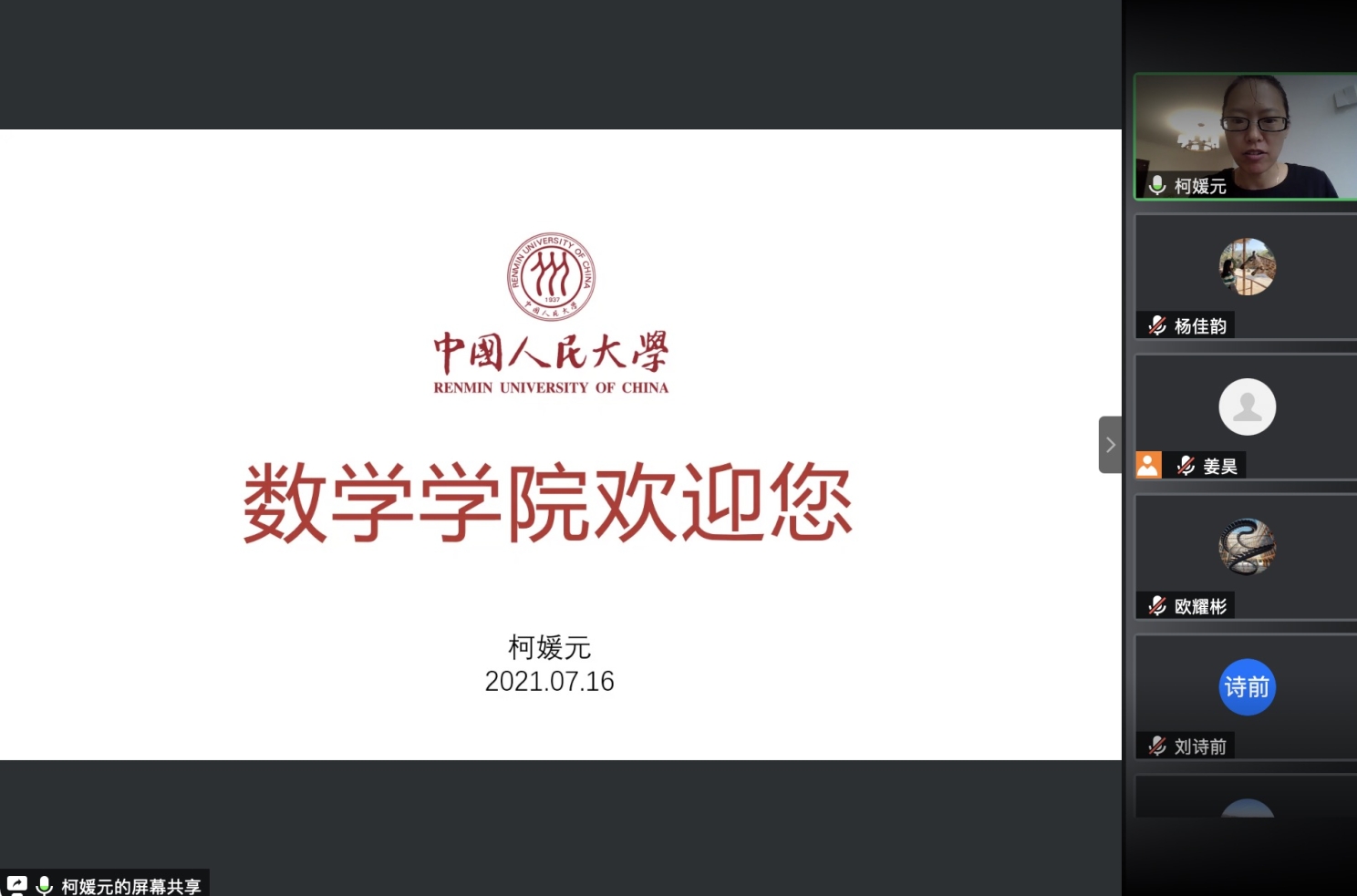 2021年7月16日上午,13av 和数学科学研究院2021年优秀大学生夏令营举办开营仪式。此次夏令营共有来自全国知名高校的近300名同学递交申请。经过初选,有72位同学获得参加夏令营的资格。开营仪式通过腾讯会议线上举行,13av 党委副书记黄志勇老师、副院长柯媛元老师出席,由姜昊老师主持。整个仪式包括学科介绍、方向介绍、实验室介绍等环节,丰富的内容令同学们表示收获颇丰。