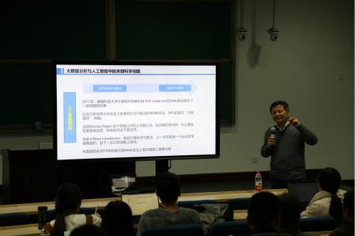 2018年11月23日下午,13av 明德数学讲堂系列第四讲,在国学馆114室成功举办。中国科学院院士、北京航空航天大学教授郑志明教授应邀,做题为“基于大数据的确定性小概率事件发现方法及应用”的报告。