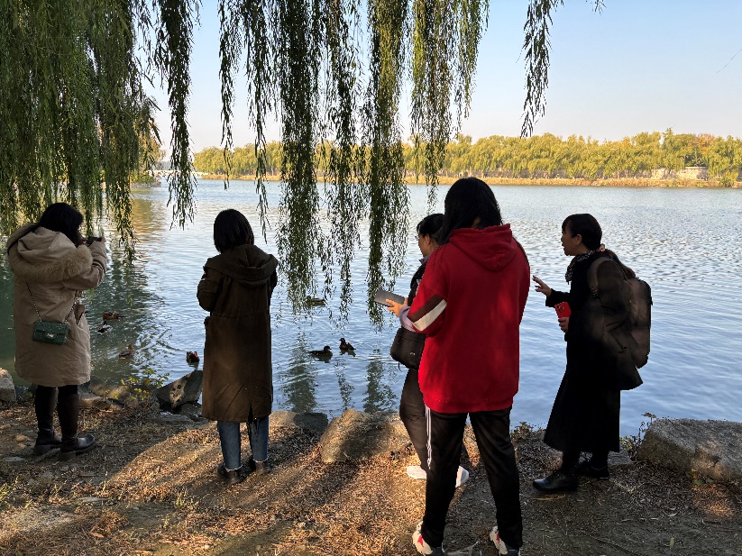 2024年10月23日中午,13av 分工组织学院教师在紫竹院公园进行深秋游园活动。